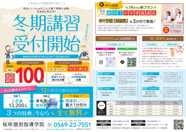 【半田中央校】2,025冬期講習受付開始‼